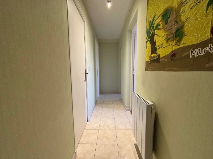 L’appartement est composé d’un hall d’entrée, deux grandes chambres de 14m², une salle de bain, une cuisine ouverte sur la salle à manger, un salon, des WC séparés et une terrasse sans vis-à-vis orientée Sud.