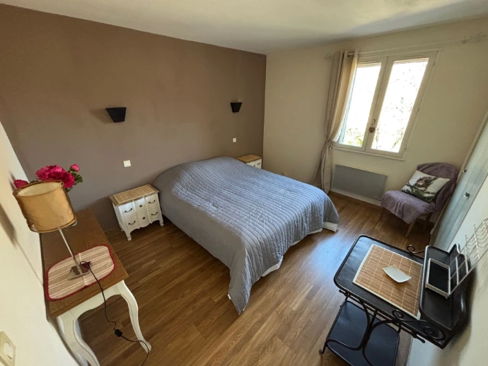 Chambres : 1 lit de 160x200 avec sommier et matelas de qualité et 1 lit 160x200 avec sommier relevable tête et pieds, ce lit peux être séparé en 2 lits de 80X200, il s'agit de deux sommiers et de deux matelas indépendants