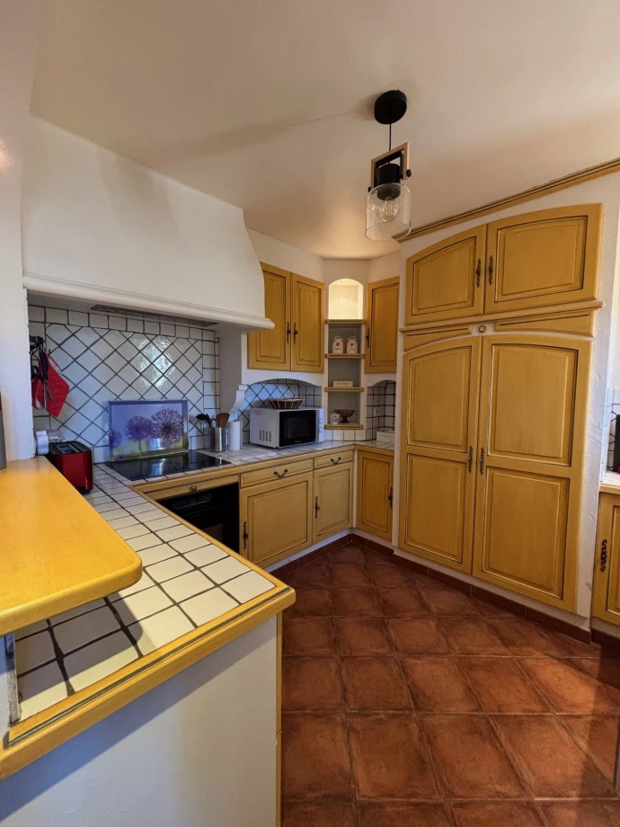 Cuisine : 1 Plaque de cuisson 3 feux induction, réfrigérateur - congélateur, micro-onde, un four de grande taille, un lave-vaisselle