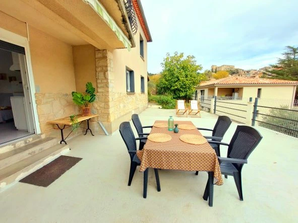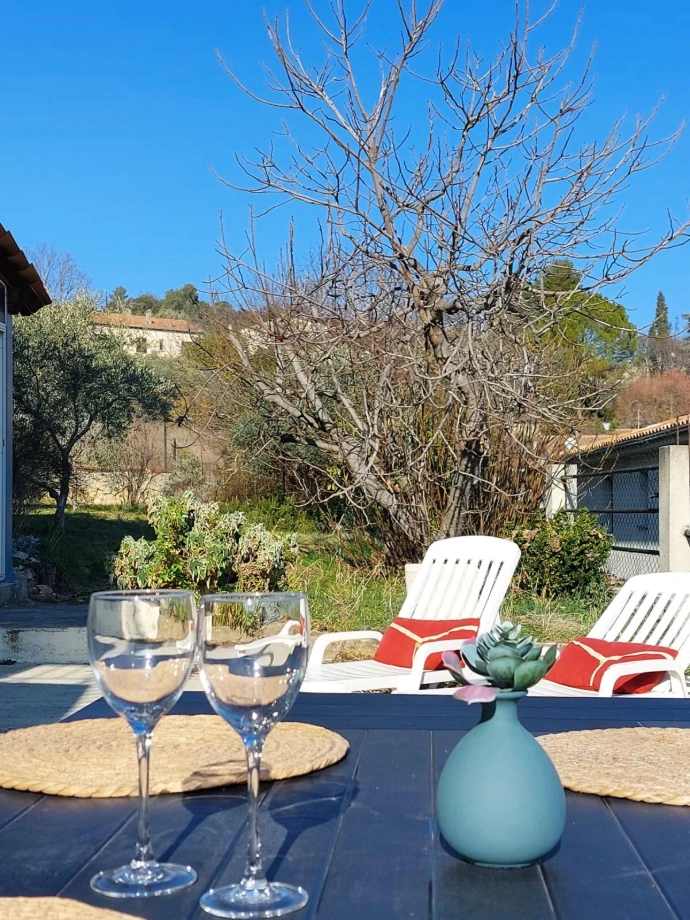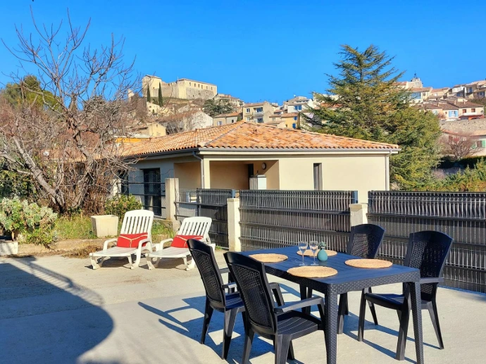 Dans le très agréable village de Gréoux-les-Bains, au rez-de-jardin d’une maison individuelle, appartement type 2 climatisé avec grande terrasse privée.